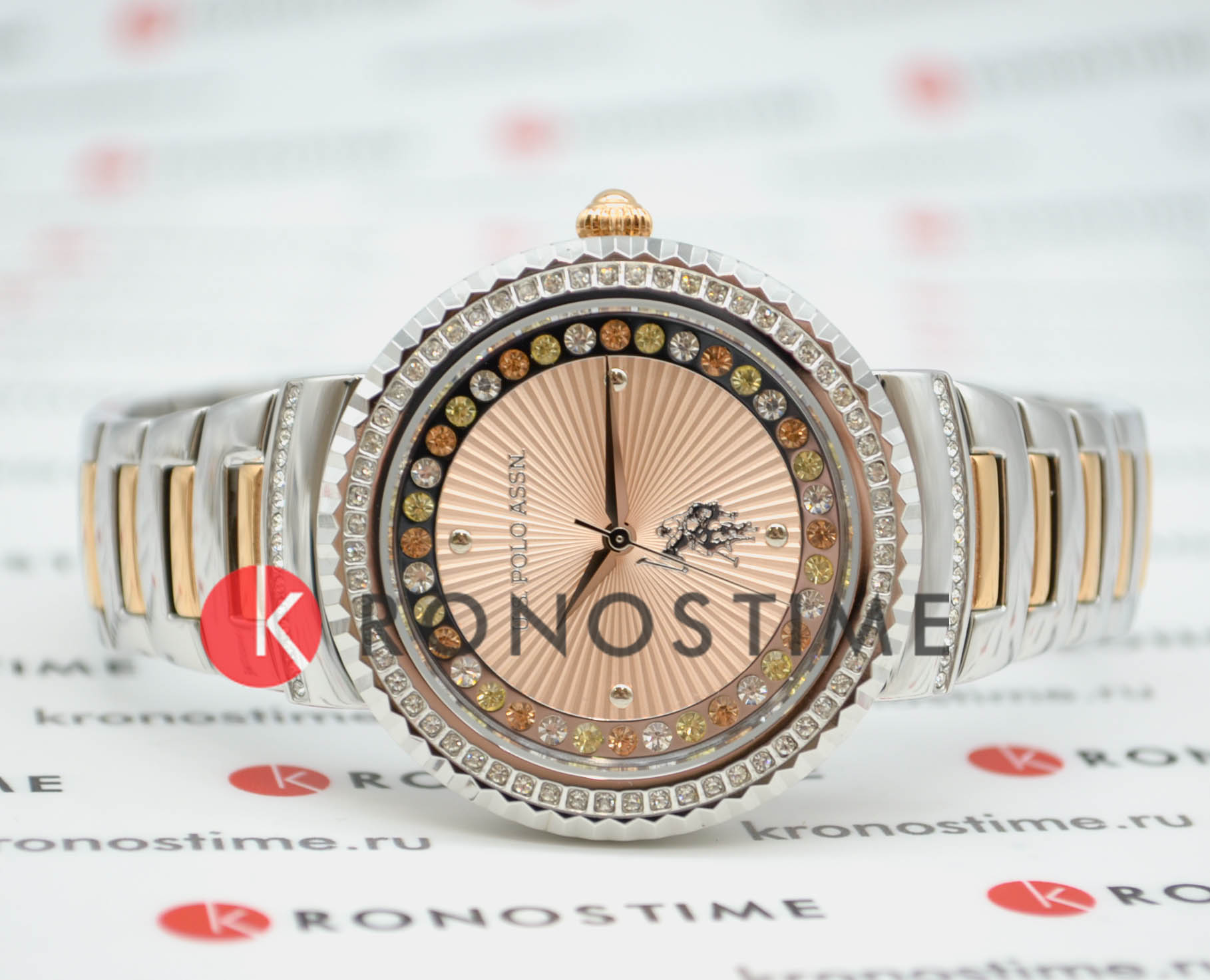 Женские часы U.S. Polo Assn. Stile USPA2056-06, кварцевый механизм с высокой точностью. Минеральное стеклоМинеральное стеклоМинеральное стекло представляет собой искусственно выращенный минерал кварца. Такое стекло отличается особой устойчивостью к повреждениям и царапинам. Уступает по некоторым качествам сапфировому стеклу. устойчивое к появлению царапин, обладающее высокой прозрачностью. Корпус изготовлен из нержавеющей стали. БезельБезельВнешний ободок, закрепляющий стекло. В спортивных часах так называется поворотное кольцо с делениями на циферблате, выполняет роль таймера – замеряет отрезки времени на шкале. Неподвижный безель – элемент декора. Однонаправленно вращающийся безель на дайверских часах позволяет фиксировать моменты погружения и выныривания на поверхность. и циферблат украшены кристаллами. Класс водозащиты: 30 метров, позволит защитить корпус от случайных брызг или капель дождя. Стальной браслет с частичным IP-покрытиемIP-покрытиеМетод ионного напыления. Демонстрирует повышенную устойчивость к истиранию, окислению и химическим веществам. Под воздействием высокого давления и температуры около 1500°C молекулы металла надёжно соединяются с частицами корпуса часов. на застёжке «бабочка» с кнопкамиЗастёжка "бабочка"Такой вид застёжки дополняется предохранителями, помогающими избежать случайного раскрытия браслета. Обладают изящным исполнением. .