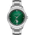 Женские часы U.S. Polo Assn Stile USPA2060-05, кварцевый механизм с высокой точностью. Минеральное стеклоМинеральное стеклоМинеральное стекло представляет собой искусственно выращенный минерал кварца. Такое стекло отличается особой устойчивостью к повреждениям и царапинам. Уступает по некоторым качествам сапфировому стеклу. устойчивое к появлению царапин, обладающее высокой прозрачностью. Корпус изготовлен из нержавеющей стали. БезельБезельВнешний ободок, закрепляющий стекло. В спортивных часах так называется поворотное кольцо с делениями на циферблате, выполняет роль таймера – замеряет отрезки времени на шкале. Неподвижный безель – элемент декора. Однонаправленно вращающийся безель на дайверских часах позволяет фиксировать моменты погружения и выныривания на поверхность. и циферблат украшены кристаллами. Окошко даты в положении 3 часа. Класс водозащиты: 30 метров, позволит защитить корпус от случайных брызг или капель дождя. Стальной браслет на раскладной застёжкеРаскладная застёжкаТакой тип застёжки используется только на браслетах из металла. Она никогда не раскрывается полностью, происходит разделение на 2 и более частей. Раскладывающая застёжка снизит вероятность потери часов к минимуму..