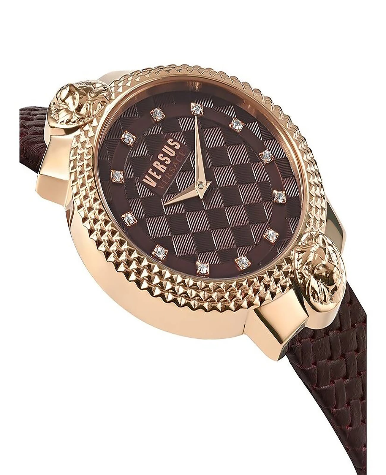 Притягательный дизайн этих модный часов эффектно подчеркивает неповторимый вкус их счастливой обладательницы. Эффектные дизайнерские часы Mouffetard с круглым корпусом. Безель декорирован узором ''Clous de Paris''. Текстурированный циферблат в виде плетеной кожи, украшенный кристаллами Сваровски. Крепление ремешка украшено вставками с объемным лого в форме головы льва. Кожаный плетеный ремешок с классической застежкой.