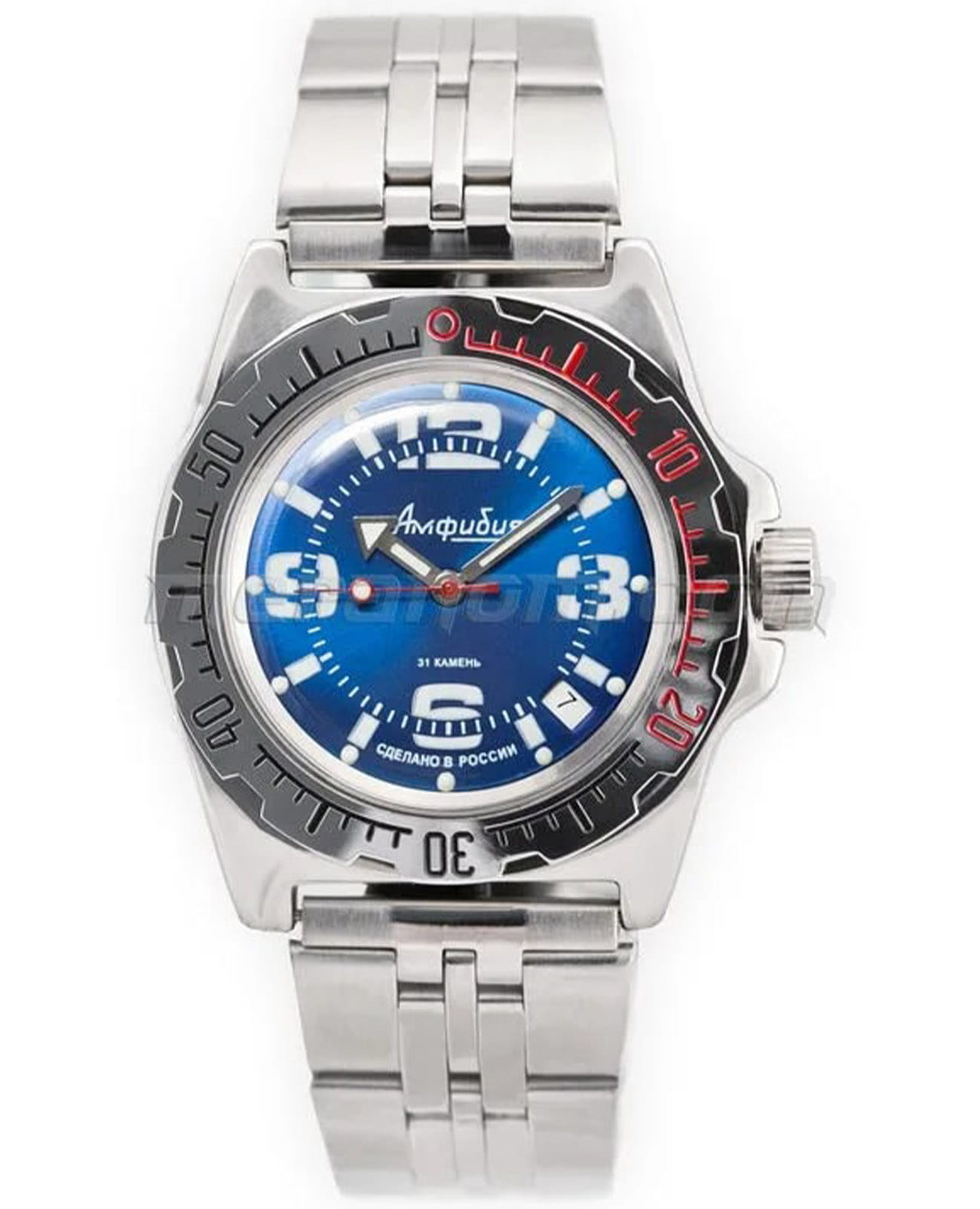 Российские механические часы Амфибия Восток Амфибия 110902, механический механизм (автоматический калибр) с высокой точностью. Класс водозащиты: 200 метров, позволит плавать, нырять и заниматься другими водными видами спорта. Корпус часов изготовлен из стали, серебристого цвета.
