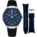 Кожаный ремешок с классической застежкой добавляет часам элегантности и удобства. В комплекте также идет сменный силиконовый ремешок, который можно использовать в зависимости от ваших предпочтений и ситуации.
