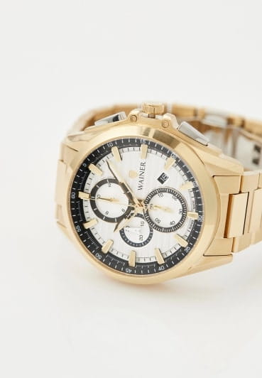 Модель Wainer WA.19401-F сочетает элегантность, швейцарское качество и современный дизайн. Корпус диаметром 43 мм выполнен из нержавеющей стали 316L с золотистым PVD-покрытиемPVDУльтратонкое покрытие наносится в технике вакуумного напыления, сочетает в себе нитрид титана особой прочности со слоем золота или оксида хрома. Несёт в себе декоративную или защитную функцию., придающим часам стильный и современный вид. Циферблат оформлен в классическом стиле с лаконичными часовыми метками, а сапфировое стеклоСапфировое стеклоПрочный и надёжный материал из кристалла сапфира синтетического происхождения, характеризующийся особой твёрдостью и устойчивостью к царапинам и повреждениям. защищает дисплей от царапин и механических повреждений. Часы оснащены точным кварцевым механизмом, обеспечивающим надежность и стабильность хода. Браслет из нержавеющей стали с золотистым PVD-покрытиемPVDУльтратонкое покрытие наносится в технике вакуумного напыления, сочетает в себе нитрид титана особой прочности со слоем золота или оксида хрома. Несёт в себе декоративную или защитную функцию. гарантирует комфортное ношение. Водонепроницаемость до 50 метров защищает часы от случайных брызг. Wainer WA.19401-F — это стильный аксессуар для мужчин, ценящих швейцарскую точность, современный стиль и надежность.