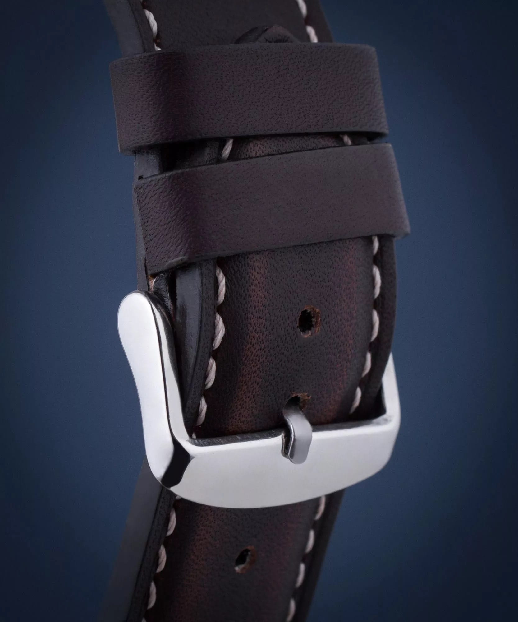 Zeppelin 100 Years Zeppelin ED.2 76746 – элегантные мужские часы, сочетающие классический дизайн и функциональность. Корпус диаметром 42 мм и толщиной 12 мм выполнен из нержавеющей стали, обеспечивая прочность и долговечность. Циферблат с арабскими цифрами и хронографическими счётчиками придаёт модели винтажный шарм и обеспечивает удобство считывания информации. Циферблат защищён минеральным стекломМинеральное стеклоМинеральное стекло представляет собой искусственно выращенный минерал кварца. Такое стекло отличается особой устойчивостью к повреждениям и царапинам. Уступает по некоторым качествам сапфировому стеклу., устойчивым к царапинам. Часы оснащены японским кварцевым механизмом, обеспечивающим точное отображение времени и надёжность. Функции хронографаХронографФункция позволяет измерять отрезки времени с особой точностью: часы, минуты, секунды. Верным признаком хронографа является наличие на циферблате 3 дополнительных окошек-счётчиков. позволяют измерять промежутки времени, что повышает практичность модели. Кожаный ремешок с классической пряжкой обеспечивает комфортное ношение и надёжную фиксацию на запястье. Водозащита до 50 метров (5 бар) делает часы подходящими для повседневного использования, защищая их от случайных брызг и дождя.