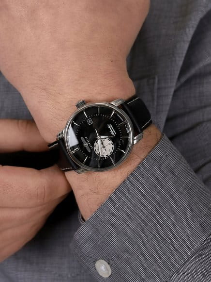 Часы Zeppelin 8470-2 — это квинтэссенция элегантности и точности. Эти часы оснащены автоматическим механизмом с серебристым стальным корпусом круглой формы и черным ремешком с пряжкой из натуральной кожи. Черный циферблат дополнен датой дня месяца и дополнительным циферблатом с указанием времени в 24-часовом формате. Люминесцентное покрытиеЛюминесцентное покрытиеПозволяет считывать показания времени в темноте. Производители наносят на стрелки, часовые индексы, безель или поверхность циферблата светонакопительный состав, дающий холодное свечение. на стрелках обеспечивает разборчивость в темноте, а закаленное минеральное стеклоМинеральное стеклоМинеральное стекло представляет собой искусственно выращенный минерал кварца. Такое стекло отличается особой устойчивостью к повреждениям и царапинам. Уступает по некоторым качествам сапфировому стеклу. защищает от царапин, что делает его идеальным выбором для любого джентльмена. Водонепроницаемость этой модели составляет 50 метров. Эти часы подойдут для повседневного ношения и станут ярким акцентом в вашем наряде.