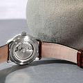 Мужские наручные автоматические часы Zeppelin ZEP-85901 из коллекции Friedrichshafen Automatic Power Reserve выполнены в классическом стиле и сочетают техническое мастерство с эстетикой ручной работы. Корпус круглой формы изготовлен из полированной нержавеющей стали и дополнен фирменными кольцами по краю — узнаваемым элементом бренда Zeppelin. Механизм — механический с автоподзаводом, оснащённый 26 камнями, с частотой 28 800 полуколебаний в час и запасом хода до 45 часов. Ретроградный указатель запаса хода добавляет функциональности и оригинальности. Прозрачная задняя крышка позволяет наблюдать за работой механизма, что подчёркивает его техническую проработку и стиль. Циферблат выполнен по технологии гильоше с узором Clous de Paris , придающим ему благородство. Цвет циферблата — белый гильоше. Метки представлены арабскими цифрами, формат времени отображается в двух системах — 12-ти и 24-х часовой. Окошко даты расположено в положении 3 часов. Часы оснащены выпуклым минеральным стеклом повышенной прочности K1 минеральное стеклоМинеральное стеклоМинеральное стекло представляет собой искусственно выращенный минерал кварца. Такое стекло отличается особой устойчивостью к повреждениям и царапинам. Уступает по некоторым качествам сапфировому стеклу., устойчивым к мелким повреждениям. Заводная головка — рифлёная, из нержавеющей стали. Ремешок — из коричневой натуральной кожи с текстурой, имитирующей крокодилову кожу, дополнен классической застёжкой из нержавеющей стали. Водозащита — 50WR , что позволяет использовать часы в повседневных условиях без риска повреждения от случайных брызг воды. Габаритные размеры: диаметр 42 мм, толщина 12 мм, вес — 85 граммов. Это стильный и надёжный аксессуар для ценителей механических часов и тонких деталей дизайна.